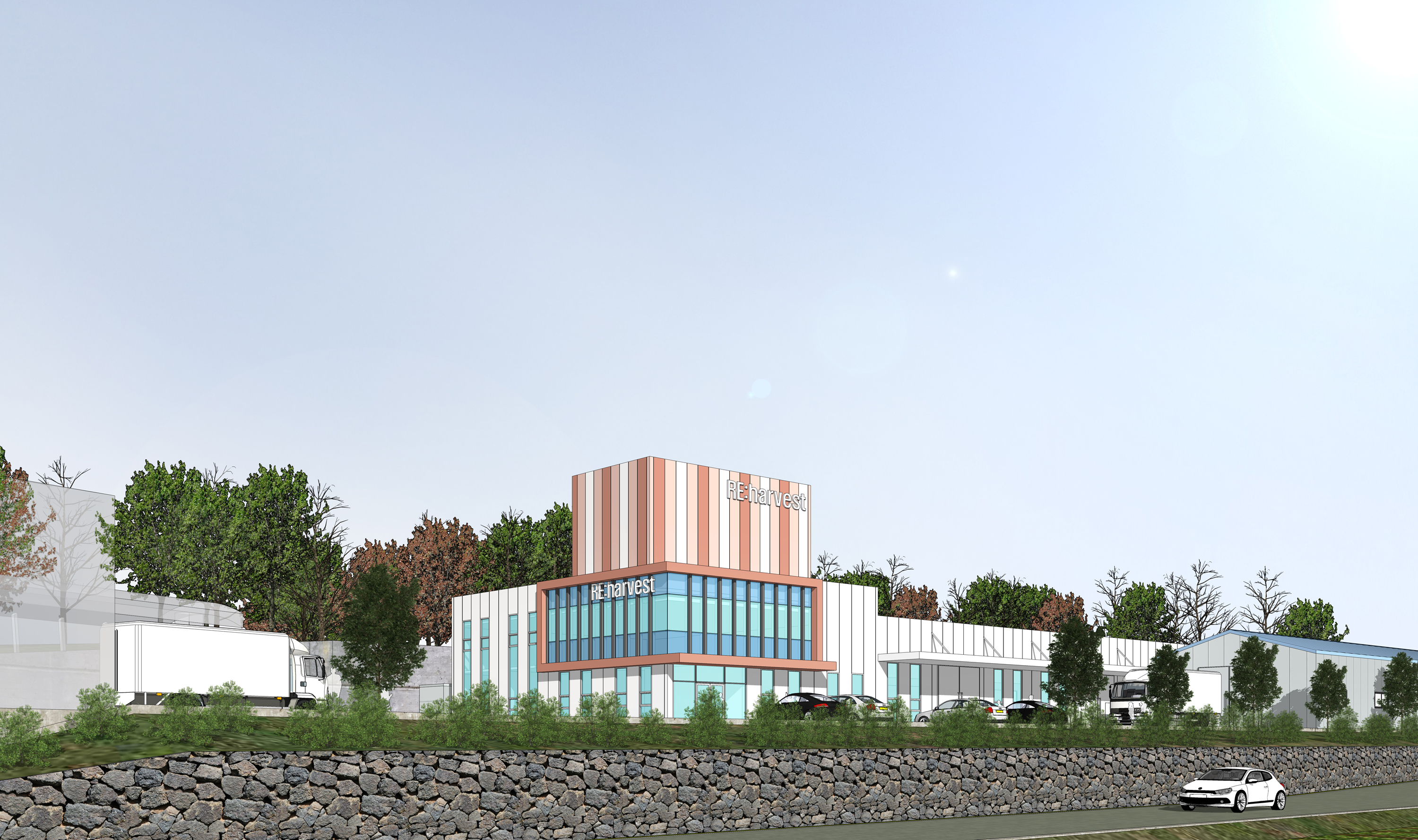 이번에 소개할 투시도는 지상 2층 규모의 공장 리모델링, 창고 입니다.