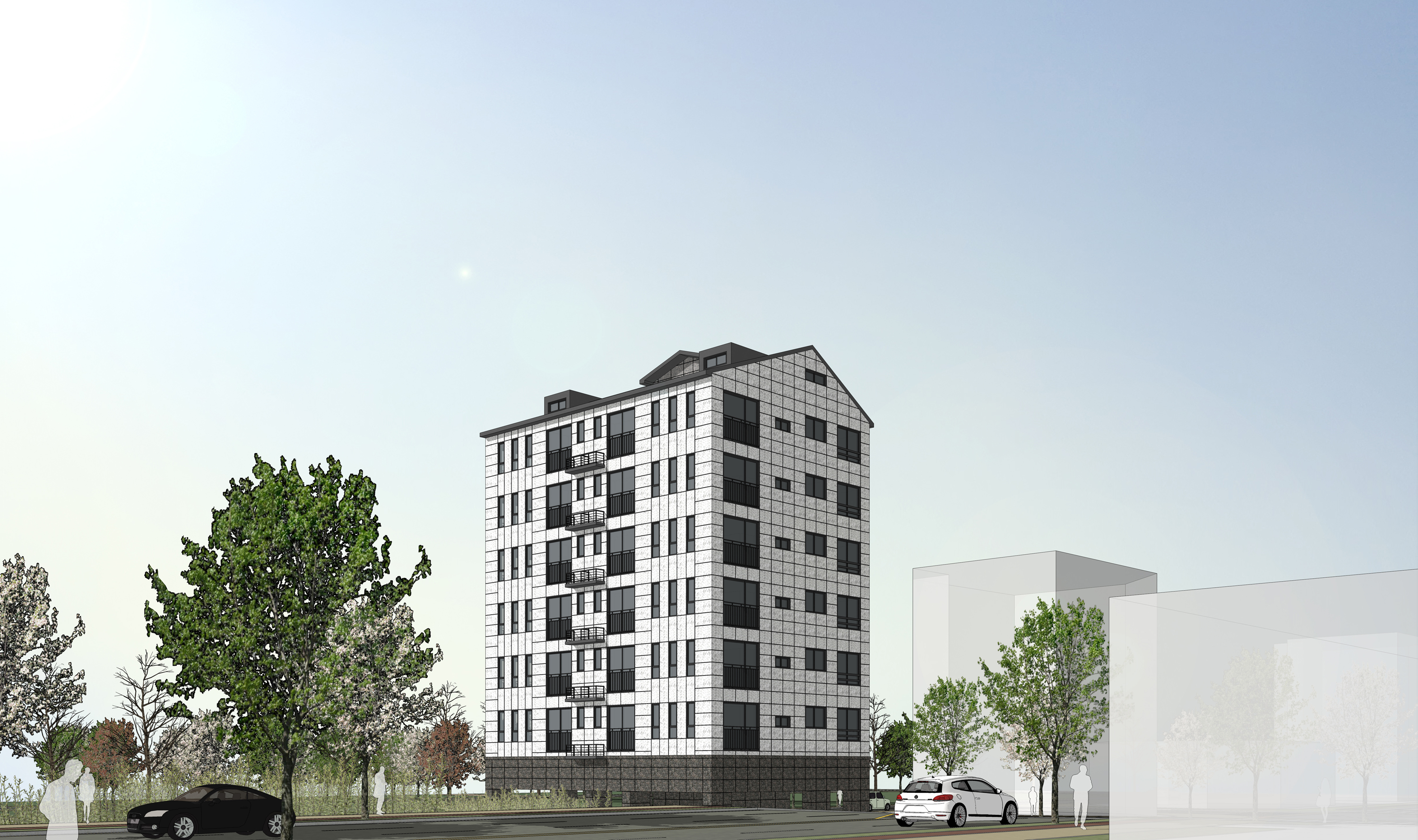 이번에 의뢰 받은 투시도는 지상 7층 규모의 오피스텔, 다세대 주택, 도시형 생활주택 입니다.