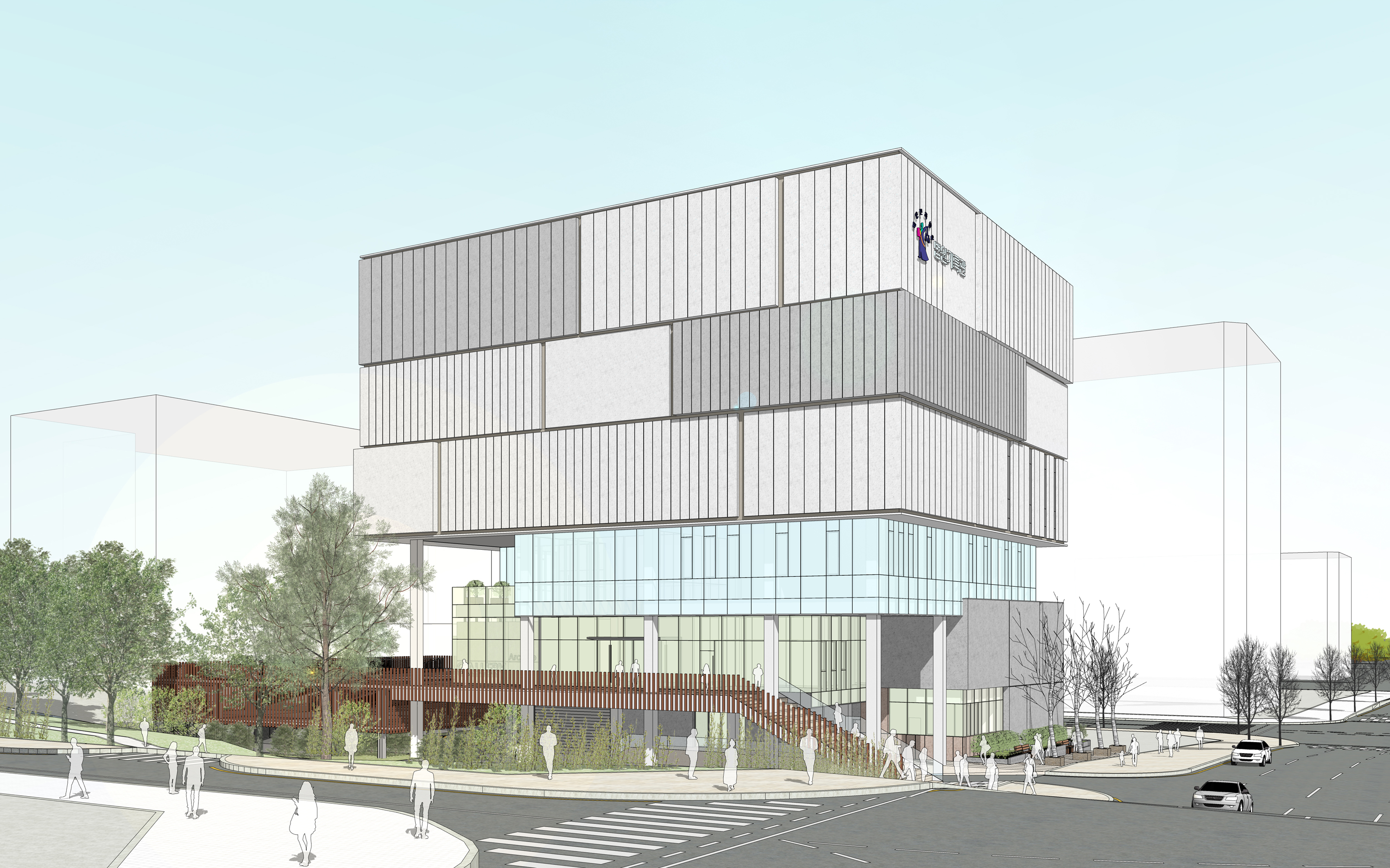 이번에 의뢰 받은 투시도는 지상 6층 규모의 관공서, 공공기관 사옥 현상설계 입니다.